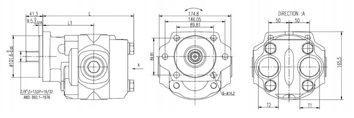 | Modelo | Pressão (bar) | Velocidade (r/min) | L | L1 | T1 | T2 | ||||