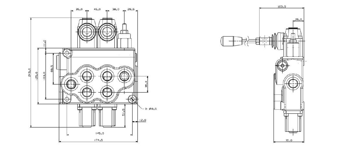 - Controles disponíveis: para controle duplo sincronizado or um cilindro atuador, controle para motores hidráulicos;